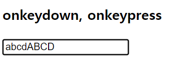 똑같이 input 태그에 abcdABCD를 작성했는데 onkeydown과는 다르게 onkeypress 이벤트 처리기는