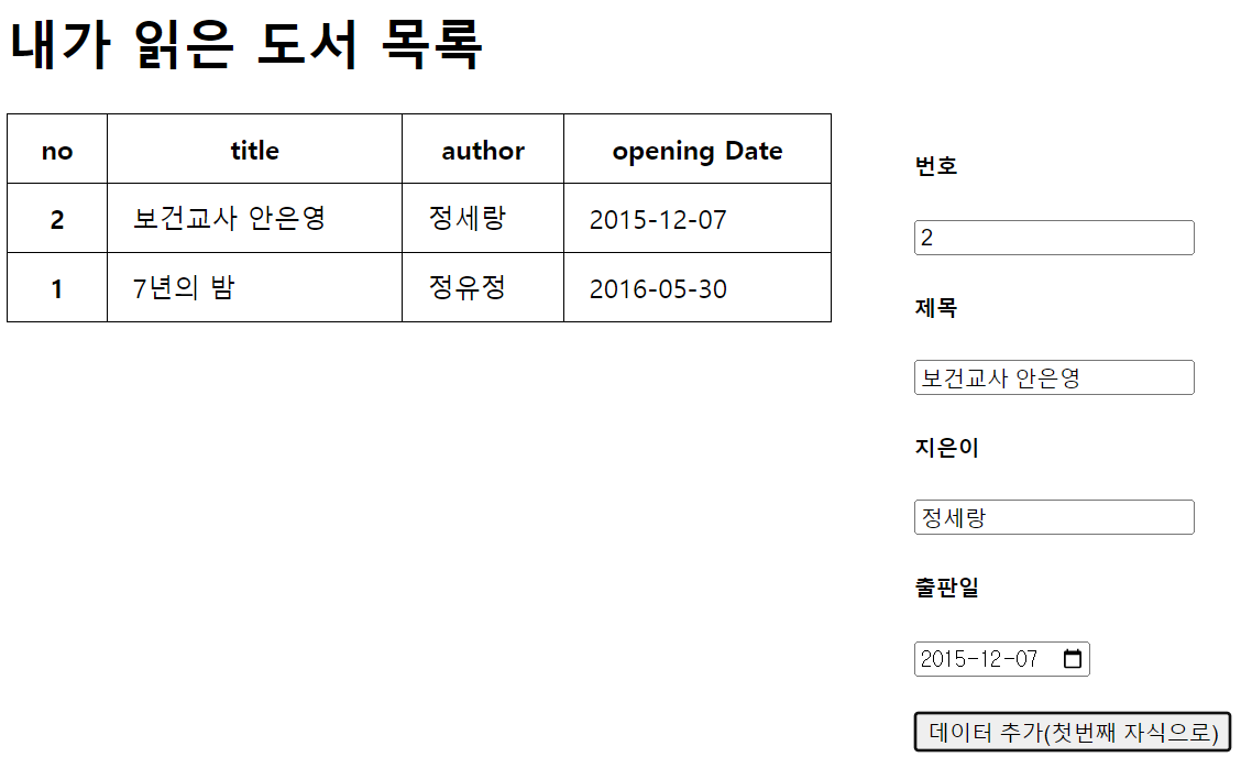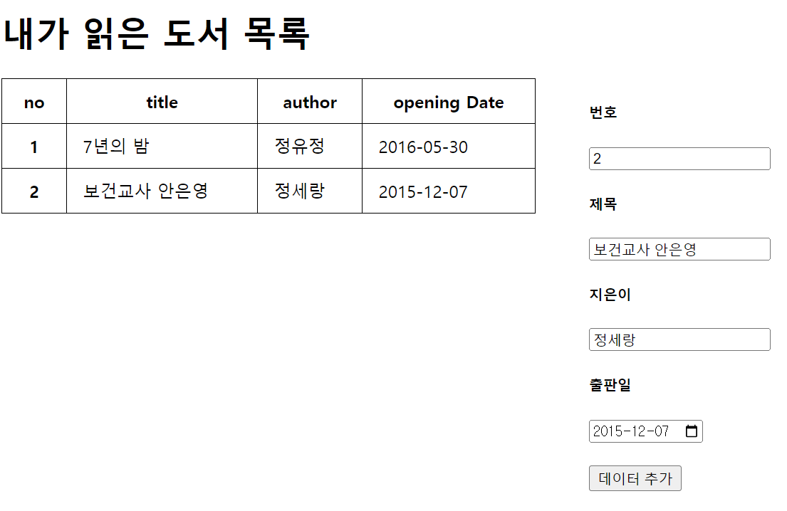 이처럼, <input>에 데이터를 입력하고 데이터 추가 버튼을 클릭하면