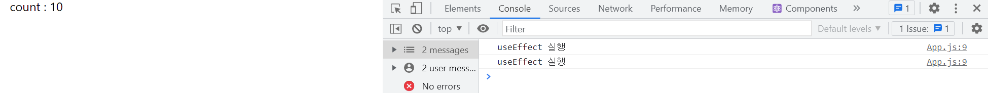 단 한번만 실행되는 것을 확인할 수 있다. (두 번 출력되는 것은React.StrictMode 때문입니다.)