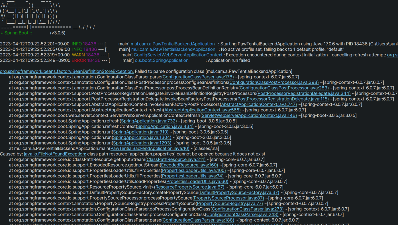 - application.properties가 존재하지 않는다고 해서, 해당 파일을 체크 해봤는데 이상이 없었다. (❌)