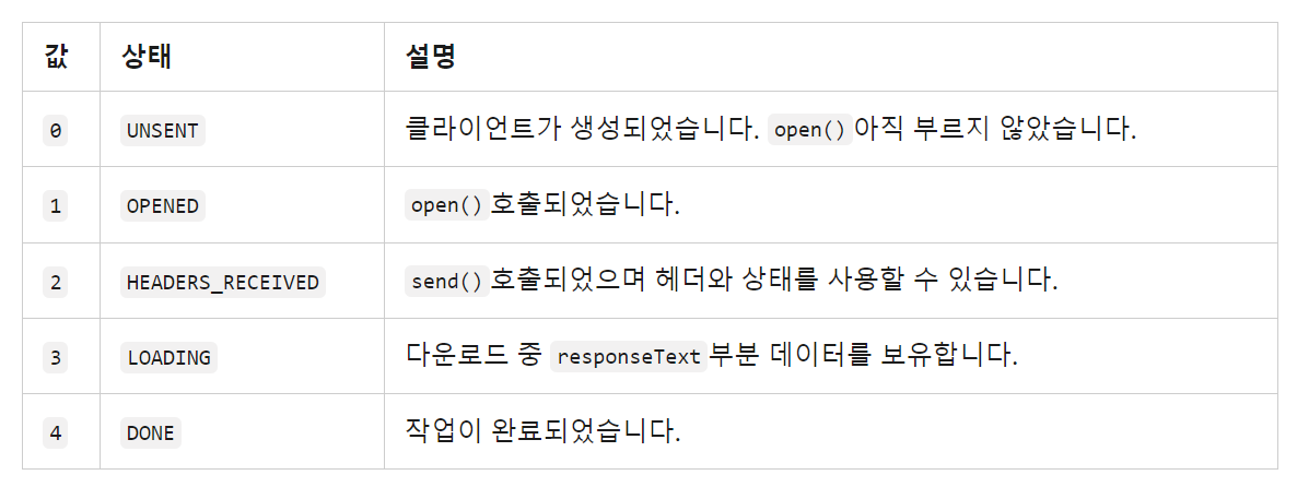 2. XMLHttpRequest의 readyState 상태값 확인해보기